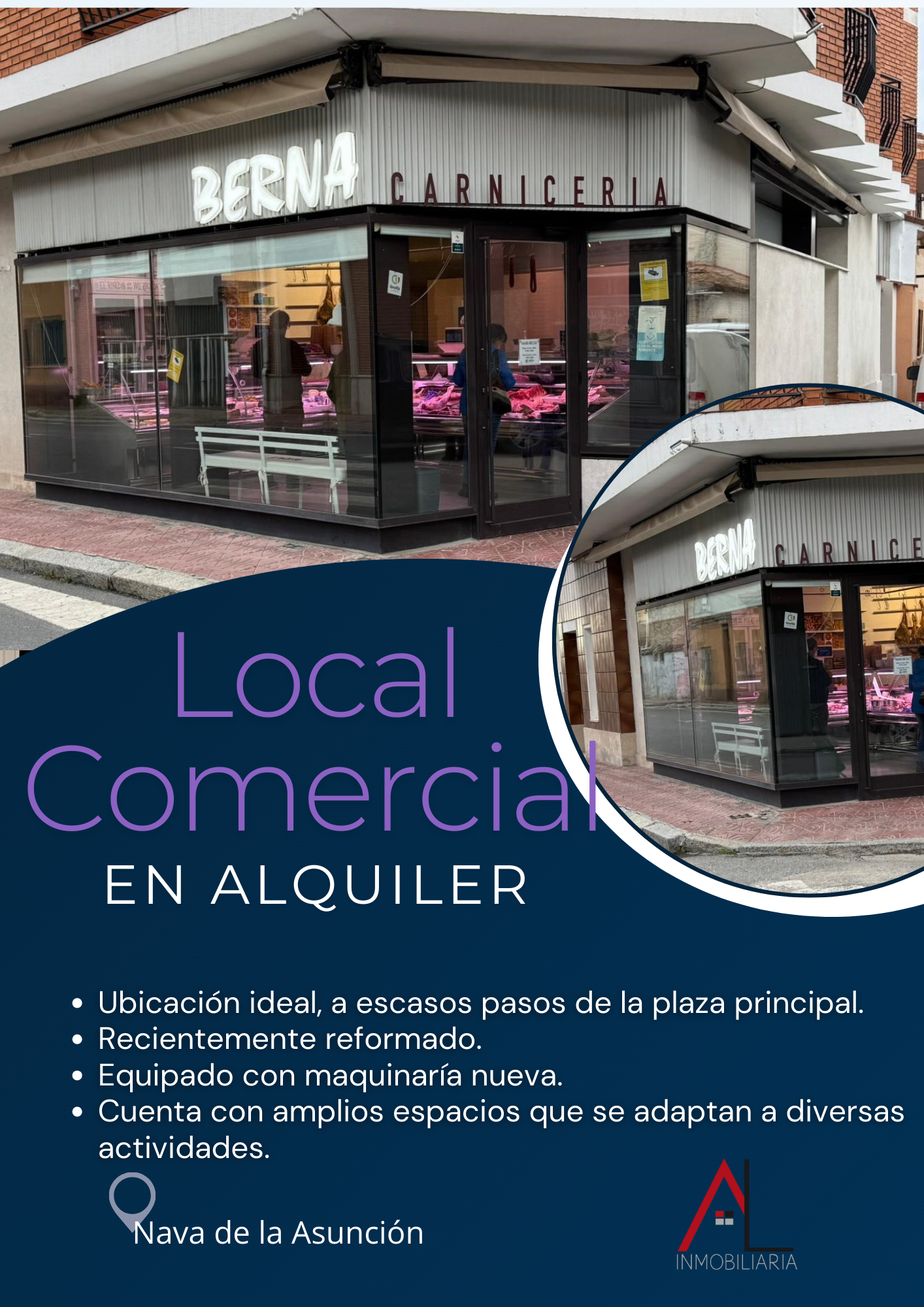¡Oportunidad única en Nava de la Asunción! Este local comercial en alquiler, ubicado a escasos pasos de la plaza principal, es ideal para emprendedores que buscan un espacio versátil y listo para funcionar. Con 218 m², este local hace esquina, lo que garantiza una excelente visibilidad y flujo de clientes.